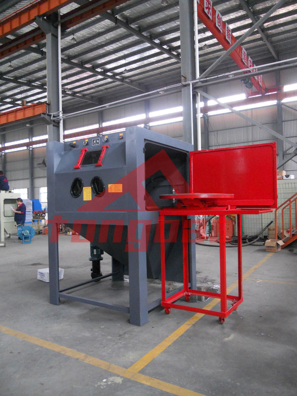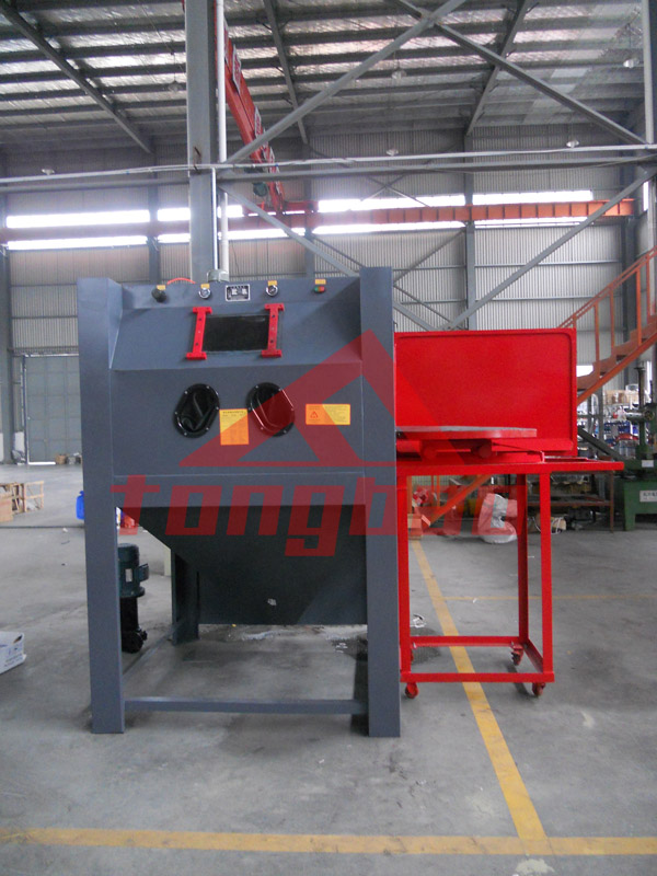 2013年5月9日 騰博機(jī)械生產(chǎn)的推車轉(zhuǎn)臺式液體手動噴砂機(jī)順利完工,即將對該手動噴砂機(jī)進(jìn)行最后的調(diào)試工作。該液體噴砂機(jī)是根據(jù)客戶數(shù)據(jù)進(jìn)行改良的非標(biāo)準(zhǔn)機(jī)型,整體高度有兩米,艙門尺寸及噴砂艙都有所擴(kuò)大,適合對較大工件進(jìn)行噴砂處理。如果調(diào)試順利預(yù)計下午就可以將這臺噴砂設(shè)備裝車送往客戶手中。通寶機(jī)械創(chuàng)建10多年,有著準(zhǔn)確的企業(yè)定位,專注于表面處理設(shè)備,用創(chuàng)新科技帶動產(chǎn)業(yè)!